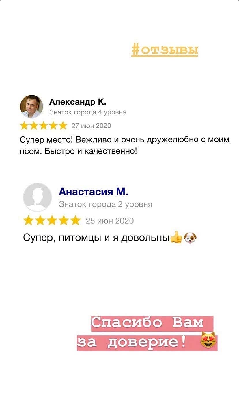 - Подстригание когтей - Чистка ушей и глаз - Вычёсывание всего лишнего Пин-ап - Купание с профессиональной косметикой в несколько этапов ( если питомец хорошо реагирует на процедуру ) - Сушка и выдувание шерстиЗаписаться